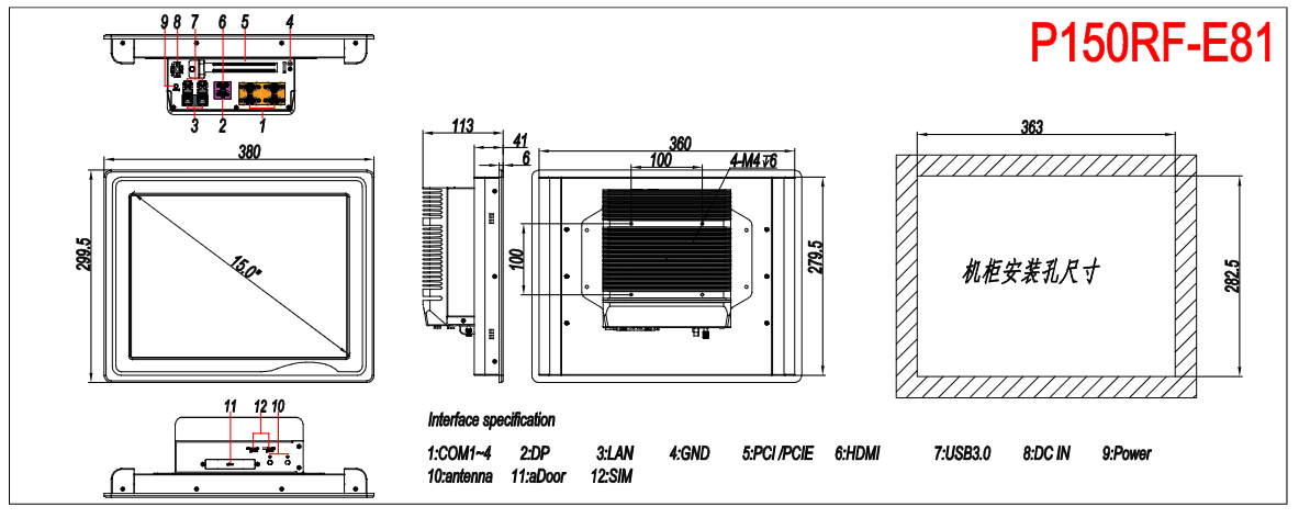 P150RF-E81采用全模具壓鑄成型的鋁合金殼體,使用大面積鋁鰭無風扇散熱設計,保障其堅固機身和高可靠穩定運行。深度的模塊化設計可實現雙Intel千兆網絡或高速隔離IO,以及多IO接口的靈活擴展,更支持CPU核心模塊的快速升級迭代。前面板使用美觀PVC膜和高溫五線電阻式觸摸屏,達到IP65防護等級。實現最小尺寸的標準PCI/PCIe擴展卡的應用支持,寬壓電源輸入、雙隔離485、多路高速USB3.0和高清顯示輸出等特點, 適用于工業4.0、機器視覺、高速運算等多種不同應用場景。