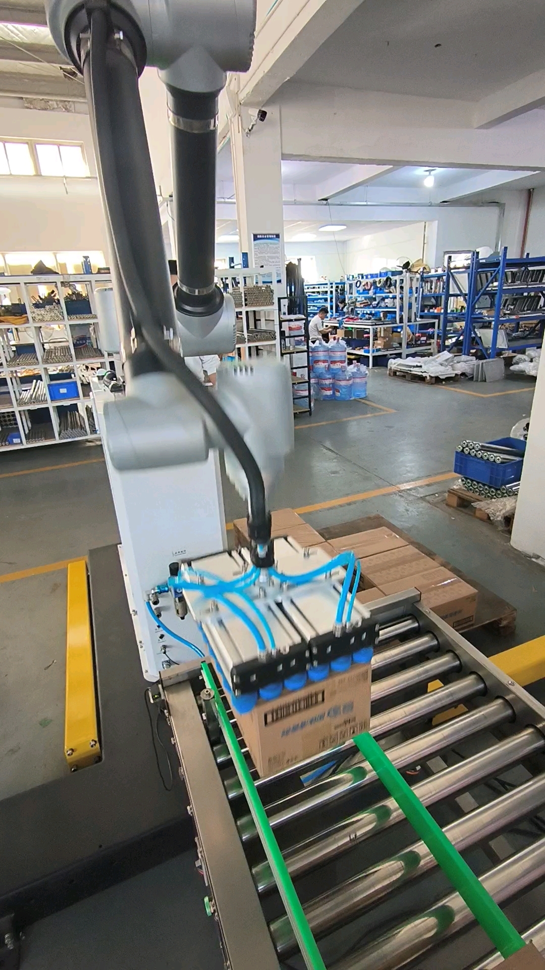 一家日化企業(yè)因廠房老舊,無(wú)法安裝傳統(tǒng)碼垛設(shè)備。采用協(xié)作機(jī)器人搭配升降柱的方案,僅需1.5m×1m占地空間,完成3層碼垛,碼放高度達(dá)2.2米,投資回收周期縮短至12個(gè)月。